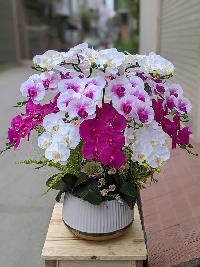 Chậu lan hồ điệp cung chúc tân xuân: bao gôm cành lan Hồ Điệp màu trắng, màu hồng loang và hồng đâm với chất liệu cao su non cao cấp. Các cành lan xếp tầng giống như những chậu lan thật. Nếu không tận tay sờ thì có lẽ người ngắm lan khó có thể nhận biết giữa lan thật và lan cao su.